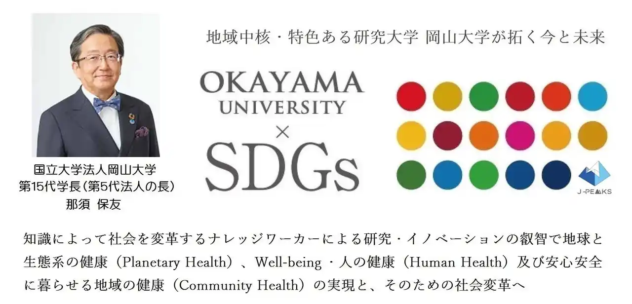 岡山大学統合報告書2025:https://prtimes.jp/main/html/rd/p/000003715.000072793.html 岡山大学SDGsホームページ:https://sdgs.okayama-u.ac.jp/ 岡山大学SDGs~地域社会の持続可能性を考える(YouTube):https://youtu.be/Qdqjy4mw4ik 岡山大学Image Movie (YouTube):https://youtu.be/pKMHm4XJLtw |