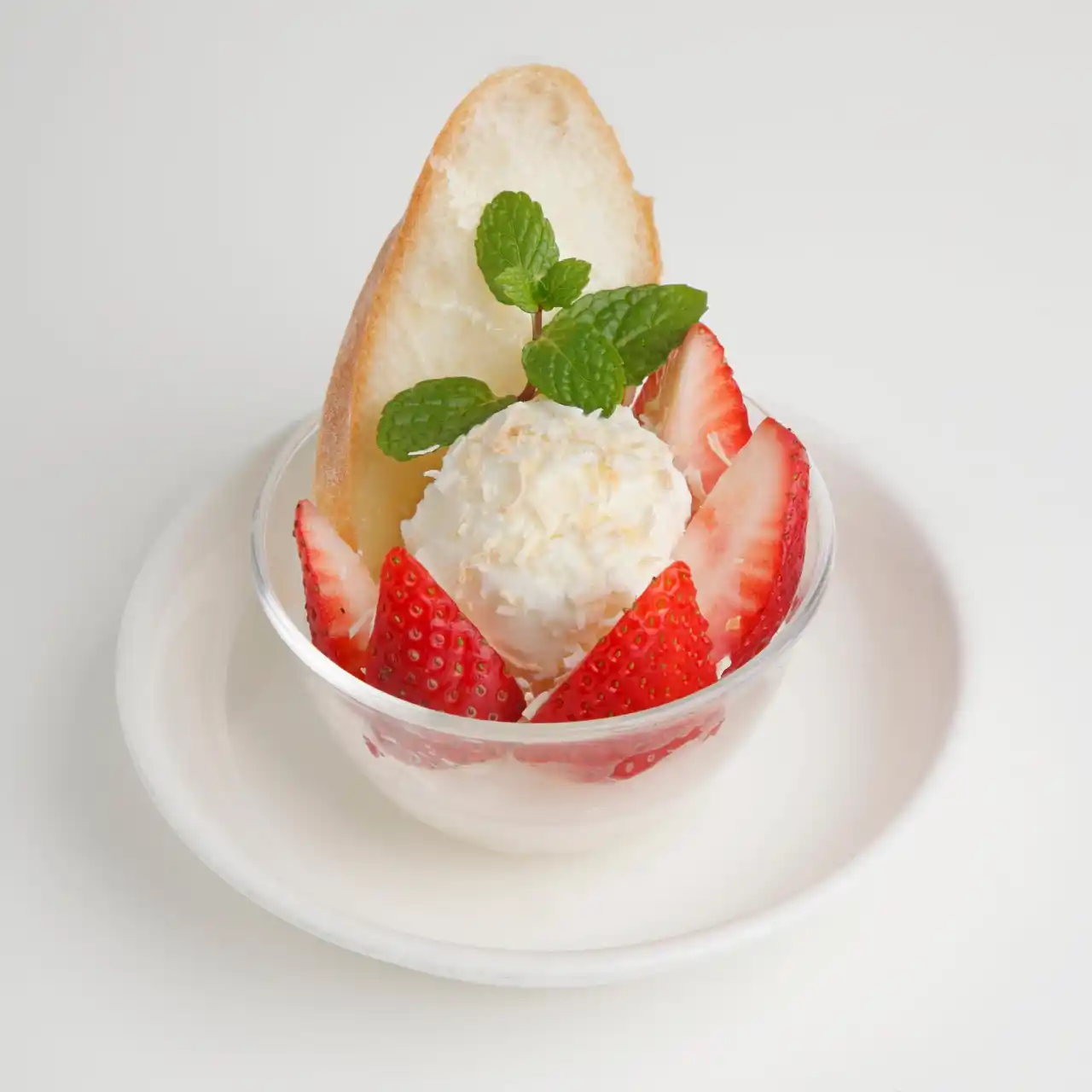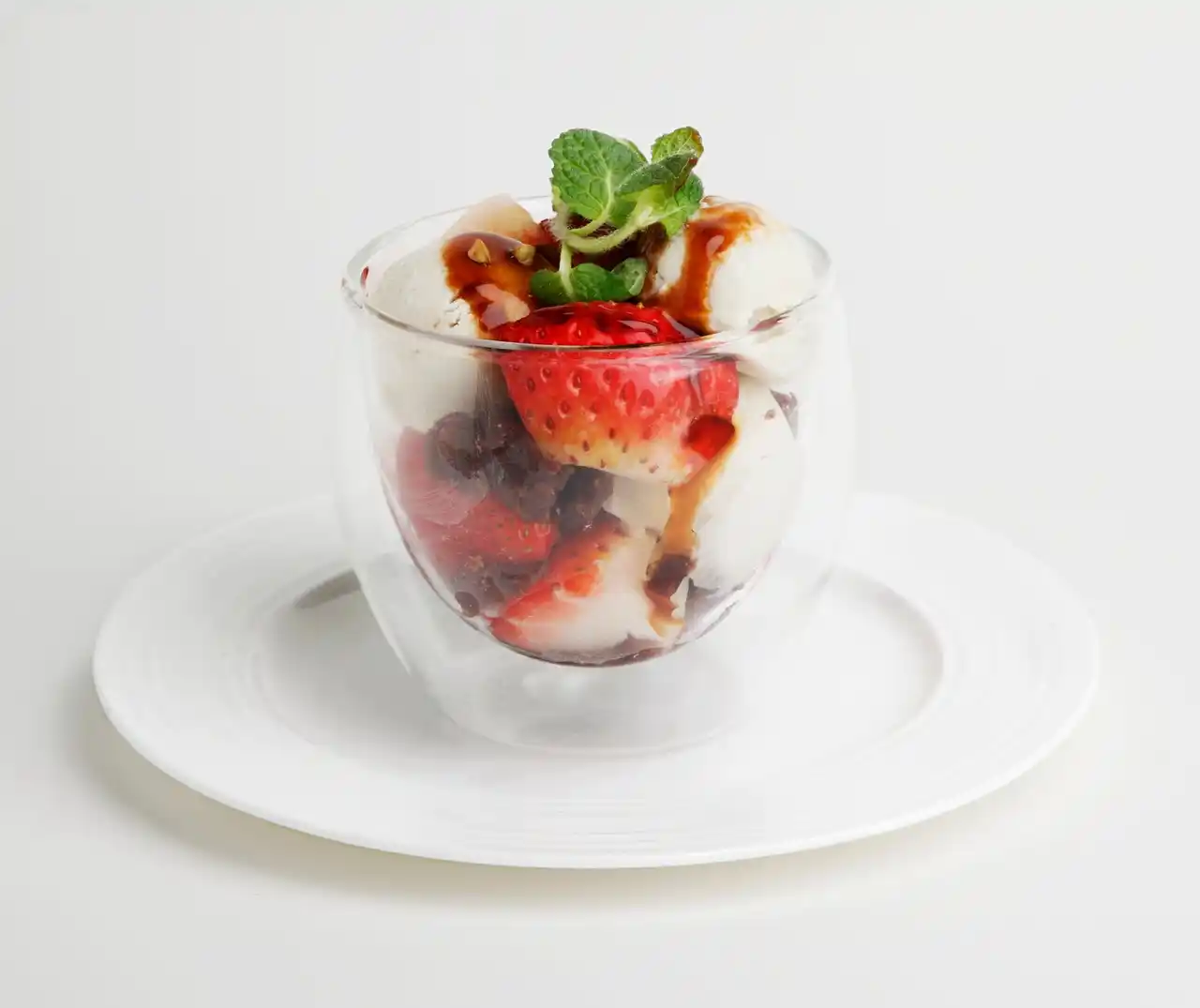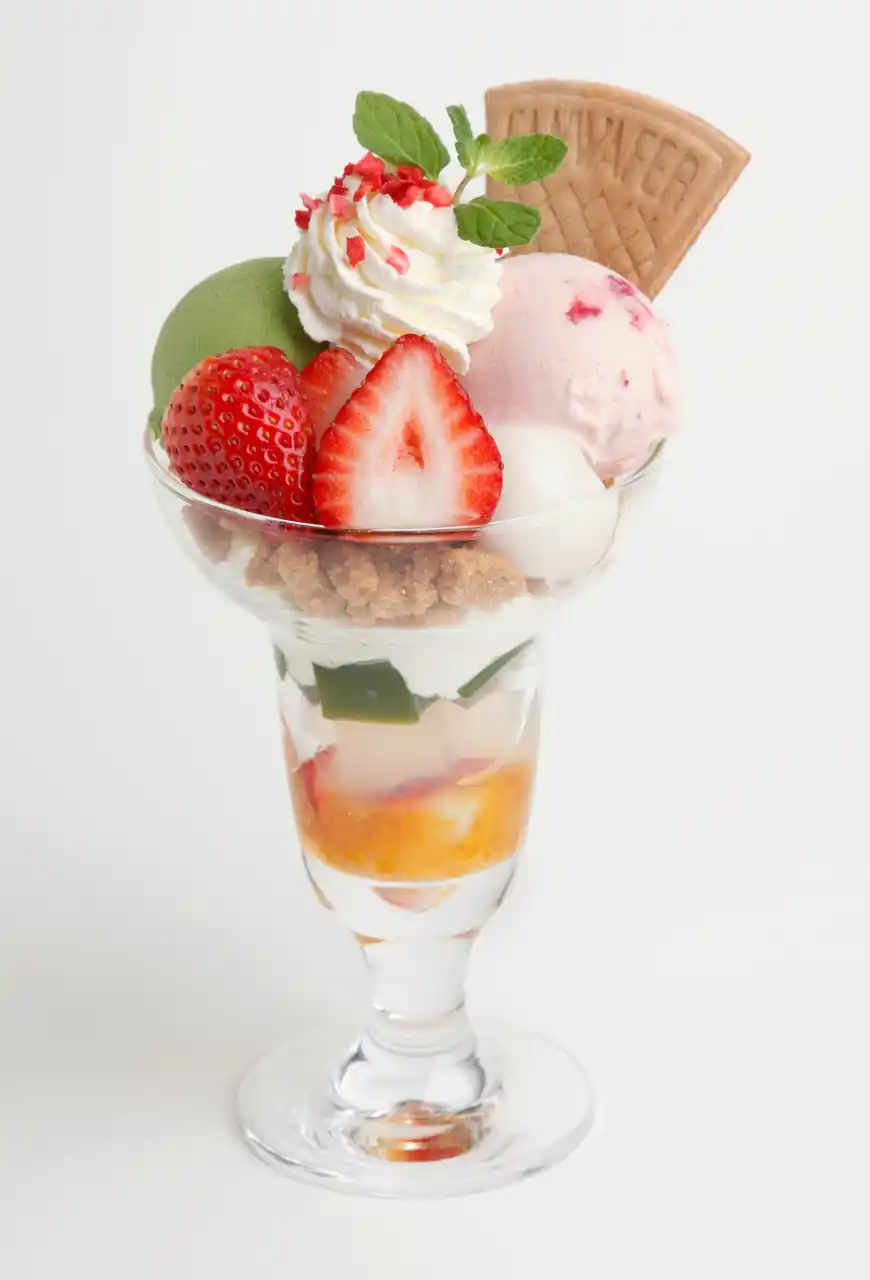 とちあいかの際立つ甘みを生かしたいちごあんみつです。酸味が穏やかで果汁が多いとちあいかと、粒あん、寒天、みつまめとの調和をお楽しみください。口に残る優しい甘みがあんみつ全体の完成度を引き上げます。 |