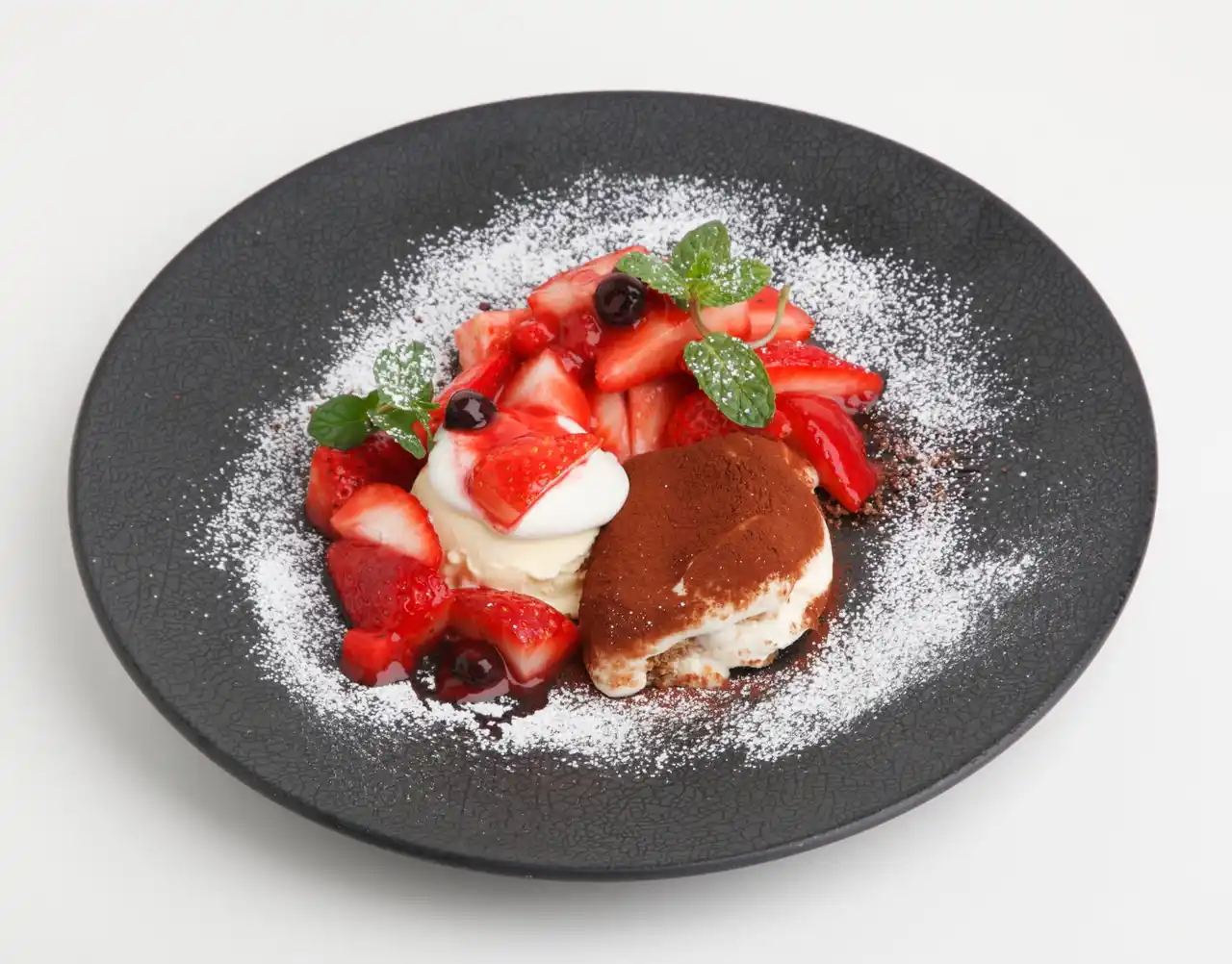 たっぷりのせたとちあいかの甘酸っぱさと、自家製ティラミスの濃厚さを一皿に盛り付けました。 本日のアイスも加わって、最後まで飽きない味の三重奏です。 |