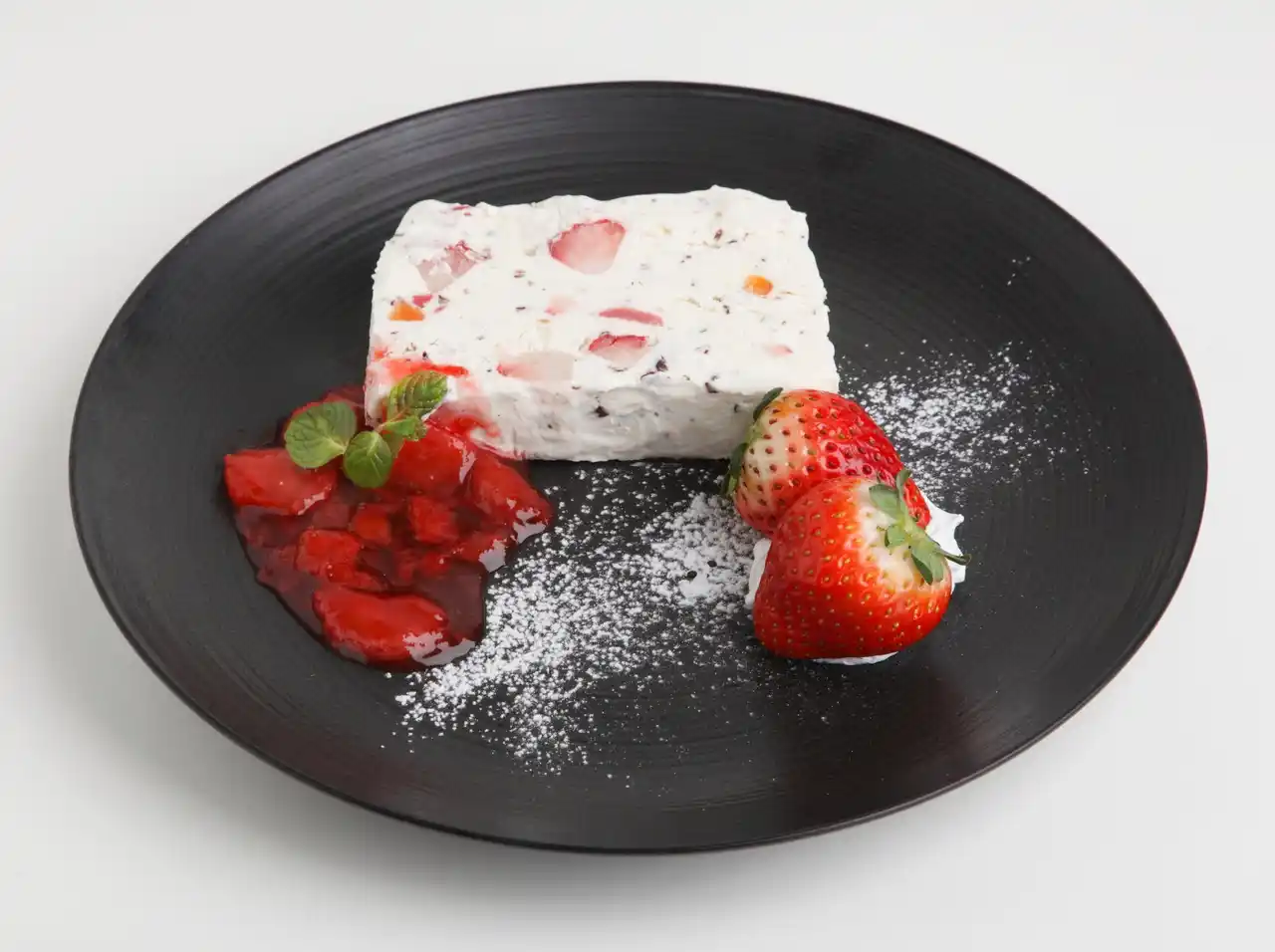 とちあいかを贅沢に使ったフローズンデザート。クリーミーなチーズ生地にいちごの香りと甘酸っぱさが広がる華やかな一品です。 |