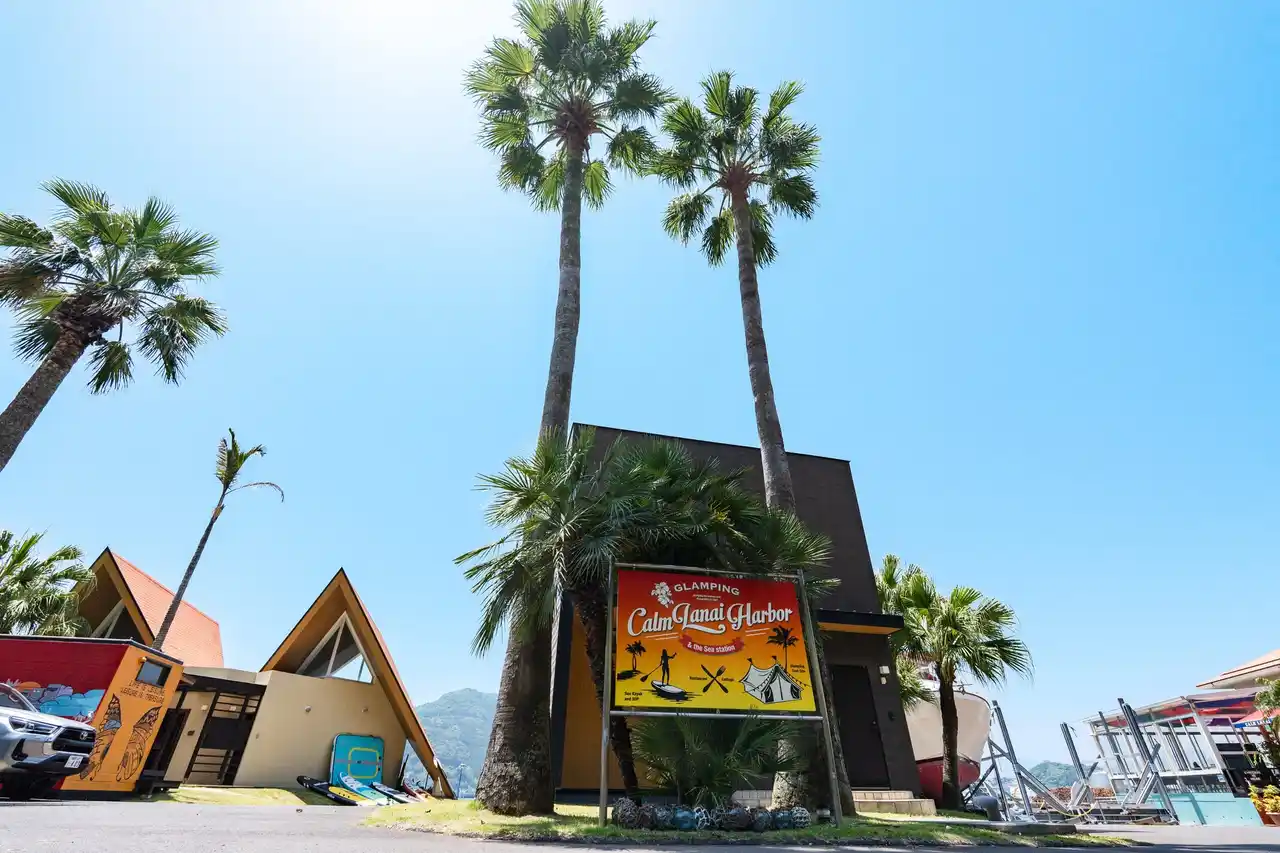 日向灘を望むウォーターフロントにある「グランピングinカームラナイハーバー」は、手軽に贅沢なアウトドア体験を味わえる、まさに大人のためのグランピング施設です。プライベート空間を重視したテントは、冷暖房完備で快適な滞在を約束し、ベッドやソファ、アメニティも充実しています。 |