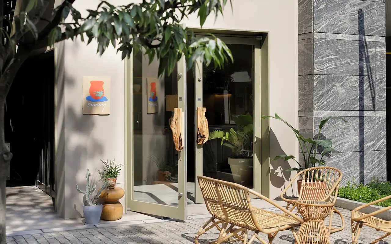 「人が五感を解き放ち、揺らぎの中で本来の感覚を取り戻せる場所(=Sway)」というテーマのもと、自然な曲線やプリミティブな素材選びにこだわり、無国籍で柔らかさを感じさせる空間づくりを行いました。既視感がなく、ちょっと不思議だけどなぜか落ち着ける場所を目指しています。 |