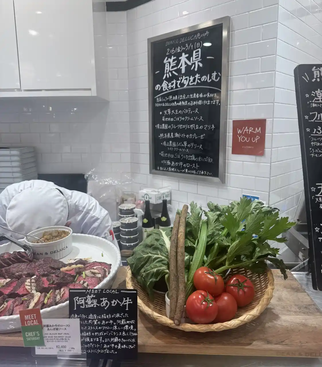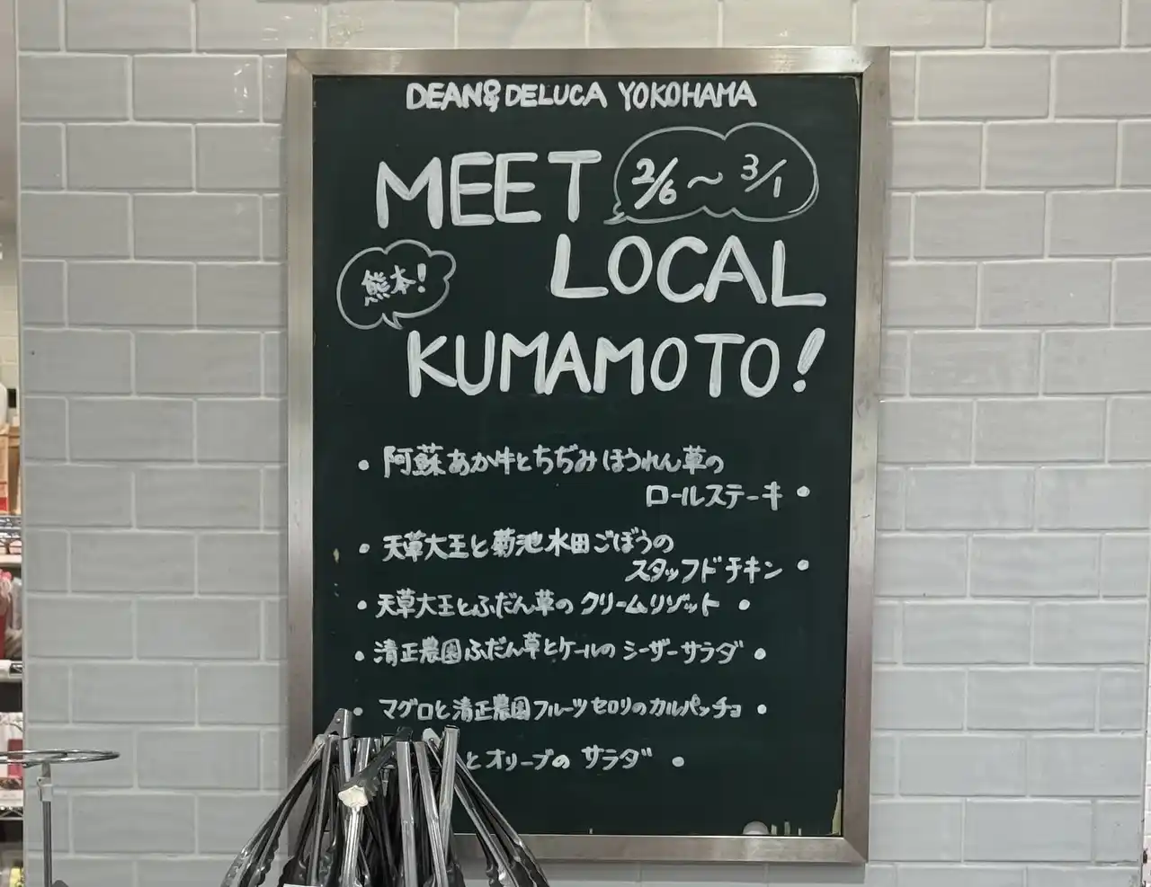 熊本県農林水産部食のみやこ推進局 流通アグリビジネス課は、特徴ある県産農林水産物等の首都圏での認知度向上の一環として、DEAN & DELUCA 横浜店および恵比寿店にて熊本県産食材を主役にした限定イベント「MEET LOCAL」を3月1日(日)まで開催しております。DEAN & DELUCAのシェフとバイヤーが2025年11月に熊本の産地を巡り、現地で出会った食材と生産者の想いを、惣菜・デリの限定メニューとして展開していただきました。食のみやこ熊本の魅力を“五感で体感できる”特別企画です。近くにお越しの際は是非ともお立ち寄りください。 |