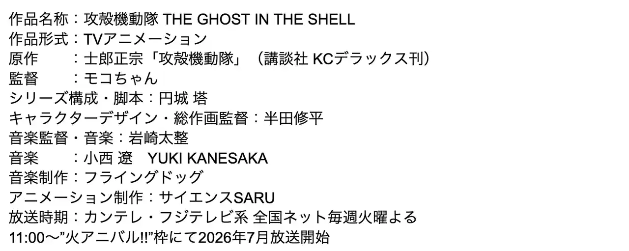 新作TVアニメーション『攻殻機動隊 THE GHOST IN THE SHELL』情報 |