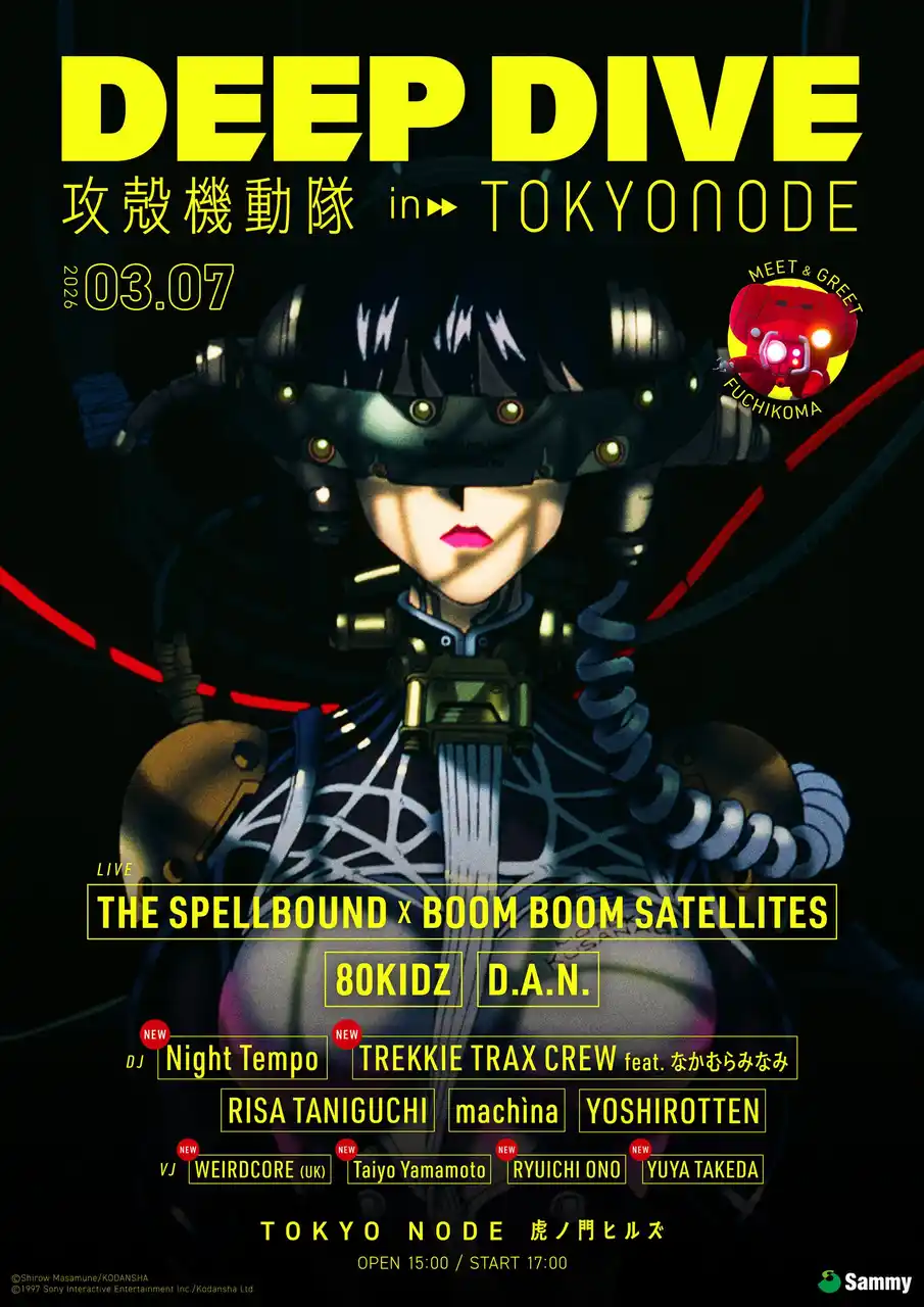 攻殻機動隊展 Ghost and the Shell 製作委員会(株式会社講談社、森ビル株式会社、KDDI株式会社、株式会社プロダクション・アイジー、株式会社パルコ、株式会社バンダイナムコフィルムワークス)は、2026年1月30日(金)から4月5日(日)まで、虎ノ門ヒルズ ステーションタワー45Fの情報発信拠点「TOKYO NODE(東京ノード)」内 TOKYO NODE GALLERY にて開催する『攻殻機動隊展 Ghost and the Shell』内で開催されます、作品公式の音楽イベント『DEEP DIVE / 攻殻機動隊 in TOKYO NODE』の情報解禁第二弾として、出演アーティスト第2弾情報を解禁いたしました。 |