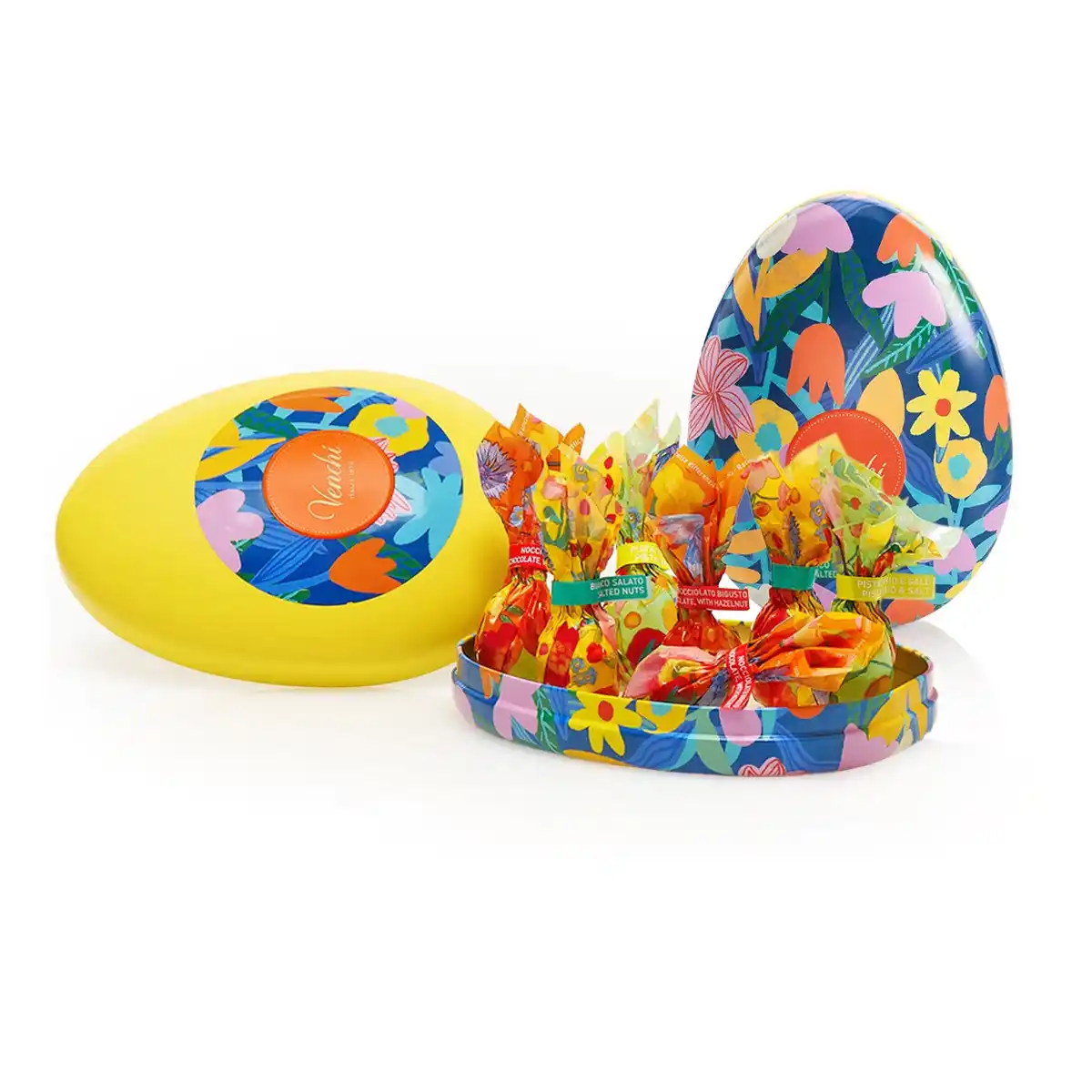 春の訪れを華やかに彩る、美しくデザインされたエッグ型のギフト缶。 |