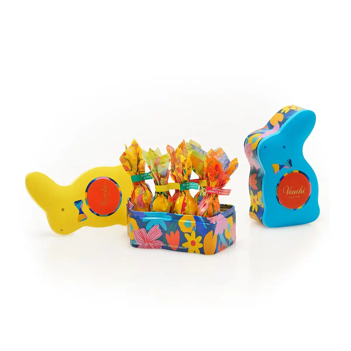 小さな本の形のギフト缶はVenchiのロングセラー。ふたを開けると、季節限定のミニエッグスチョコレートが春の訪れを祝うように姿を見せます。時代を超えて愛されるギフト缶です。 |