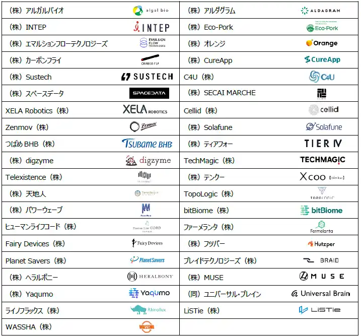 この度、第2弾として、39社を決定しましたので、お知らせいたします。今後も、有望企業を順次追加し、グローバルに飛躍するスタートアップを生み出してまいります。 |