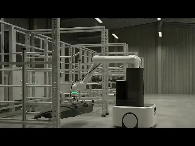 世界初の「手足のシンクロ動作」: 移動しながらアームを駆動させる独自のソフトウェア技術により、作業員の1.5倍、従来製品の4倍の生産性を達成。 |