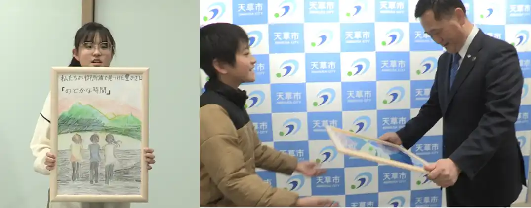 この活動に参加した小学生が2月7日(土)、学びの報告を発表するため、天草市役所を訪問しました。 |