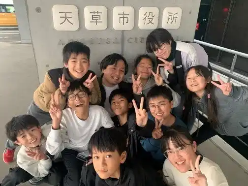 今回の天草市役所訪問では馬場昭治市長に子どもたちを迎えていただき、子どもたちが体験を通して学んだ「地域の暮らし」「自然と文化」「海洋環境や地域課題」、地元住民との交流を通じて感じた「島の豊かさ」を、子どもたちらしい観点から報告していました。 |