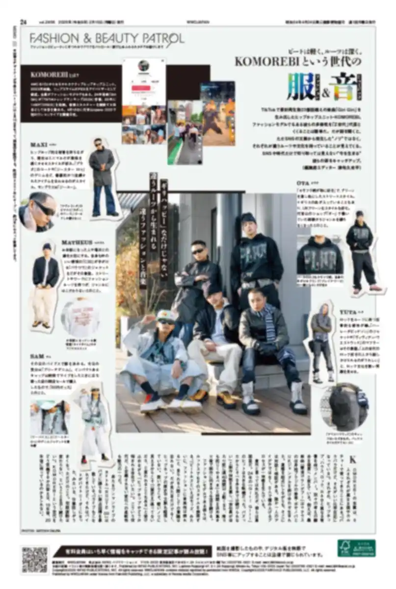 「WWDJAPAN」の人気&定番連載の裏表紙コーナー「ファッション&ビューティパトロール」では、TikTokで累計再生数23億回超えの楽曲「Giri Giri」を生み出したヒップホップユニットのKOMOREBIにフォーカス。ファッションモデルでもある彼らのファッションを徹底解剖します。 |