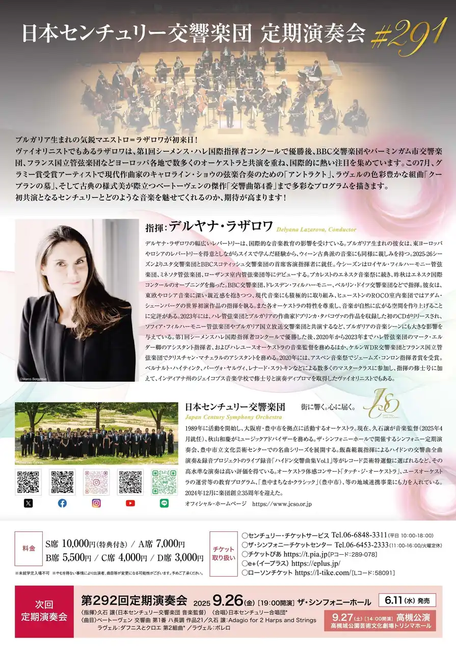 | [出 演] 指揮:デルヤナ・ラザロワ(初来日) 管弦楽:日本センチュリー交響楽団 | ||||||