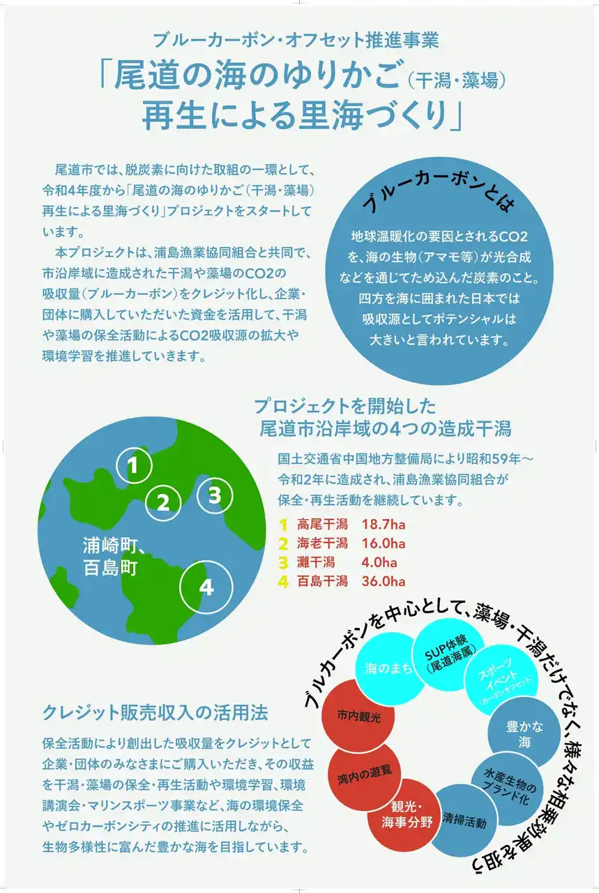 購入するカーボンクレジットは、尾道市のブルーカーボン・オフセット推進事業「尾道の海のゆりかご(干潟・藻場)再生による里海づくり」によって創出された「Jブルークレジット(R)」。この事業では、クレジット販売による収益が藻場の再生に活用されるため、大会の排出量を相殺するだけでなく、海の生態系の回復にもつながります。
