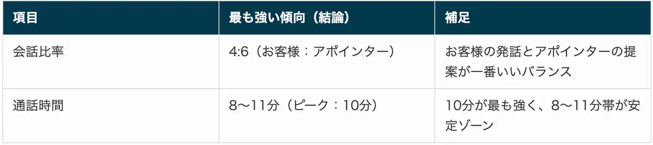 本記事では、営業代行の実運用で蓄積した架電データをもとに、成果につながりやすいテレアポの条件を整理しています。 |