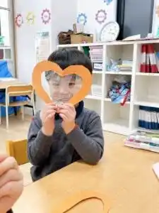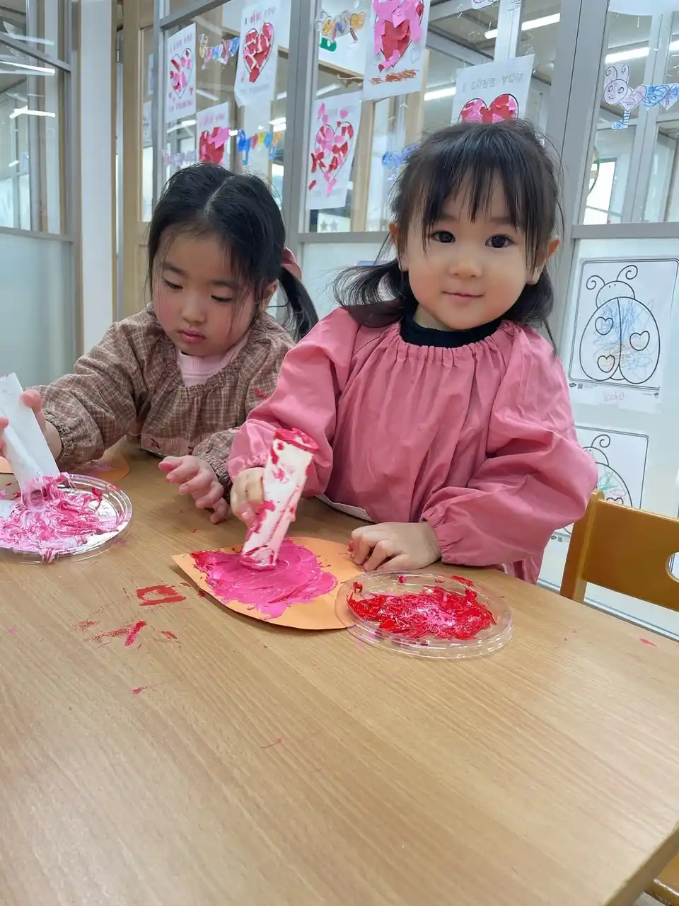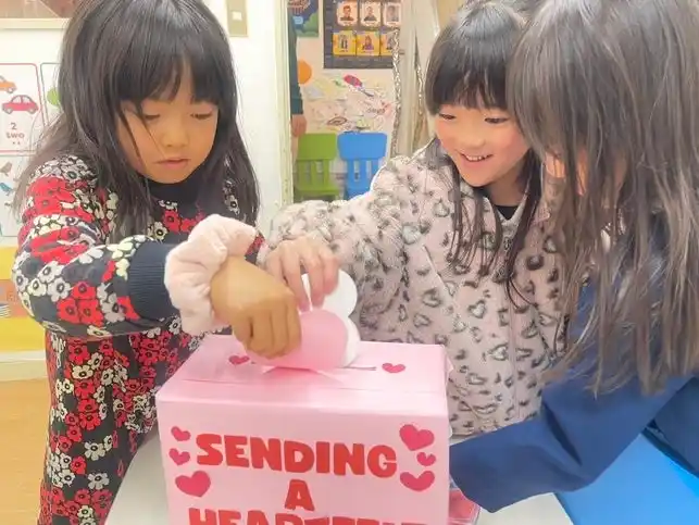 子どもたちは英語で “Thank you” の気持ちを家族や友達に英語で表現しながら、異文化理解とコミュニケーション力を育みます。日本ではチョコレートを贈る文化として定着しているバレンタインですが、欧米では家族や友人など身近な人へ感謝を伝える日として親しまれています。 |