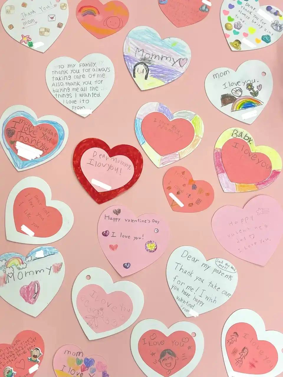 この異文化の背景に着目して英語で感謝を表現する体験を通し、「自分の思いを言葉にする力」「人とつながる力」を育む取り組みを毎年継続して実施しています。こうした実践により、子どもたちは自然に “Happy Valentine’s Day” や感謝の言葉を身近な人々に自然に伝えられるようになってきています。 |
