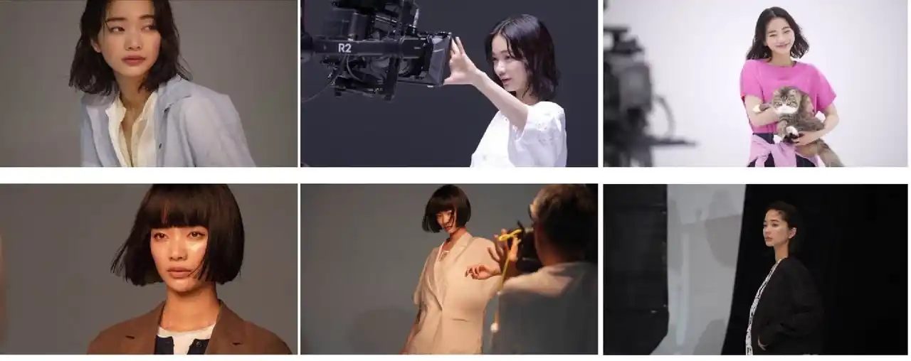 ジャケットにパンツを合わせたスタイリッシュなコーディネートで登場した見上さん。凛としたショートボブヘアと、カメラに向けるクールな眼差しが印象的です。映像が横に流れると、オールホワイトコーデに身を包んだ彼女の姿が。次にカメラが動くと、柔らかなウェーブヘアに赤いカーディガンを肩にかけた姿で現れ、こちらに微笑みかけます。照明も明るくチェンジ。キュートなウインクを送るその瞳に吸い込まれると、次はピンク色のニットにデニムを合わせたスタイルで登場。猫を抱き上げ、満面の笑顔を見せます。 |