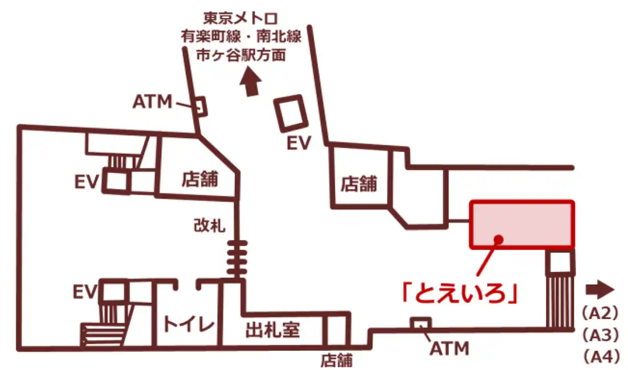 アクセス:都営新宿線市ヶ谷駅A1・A2出口方面改札外 |