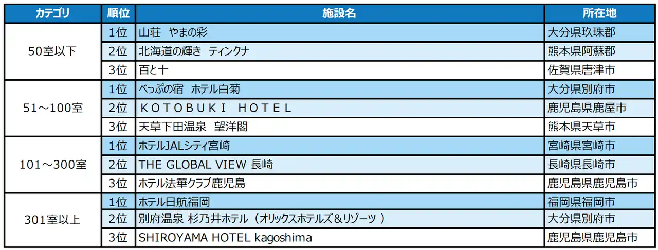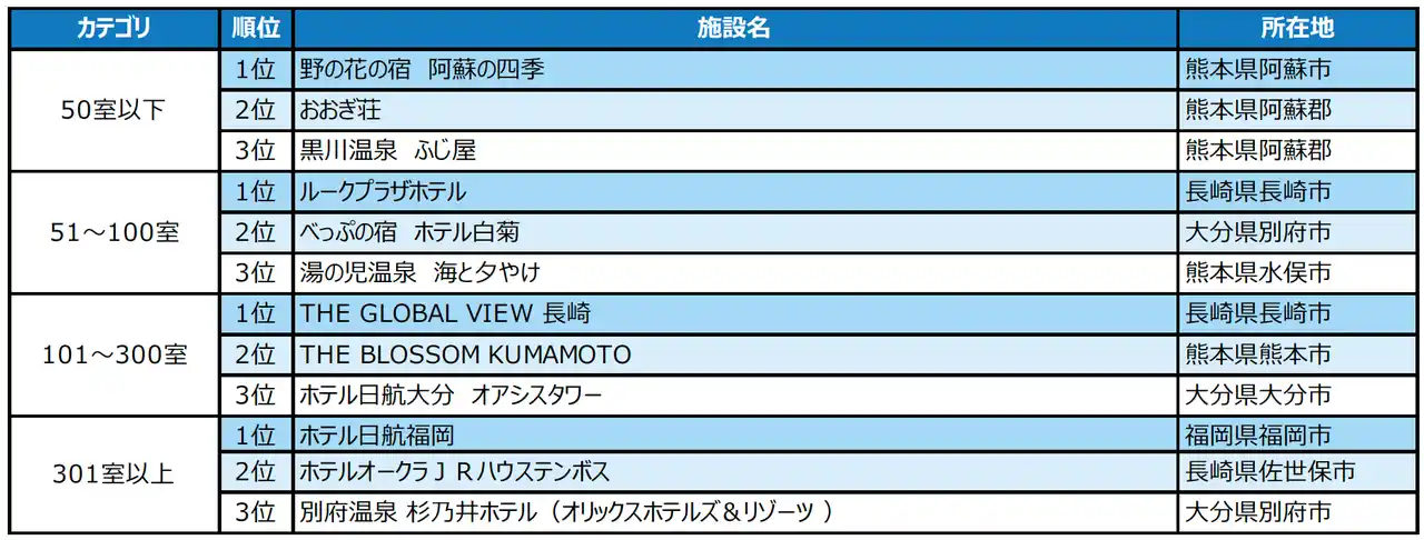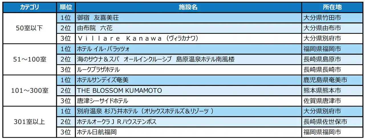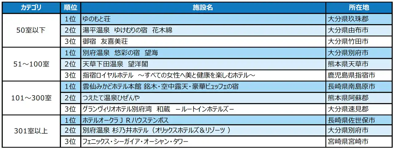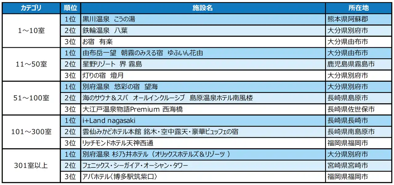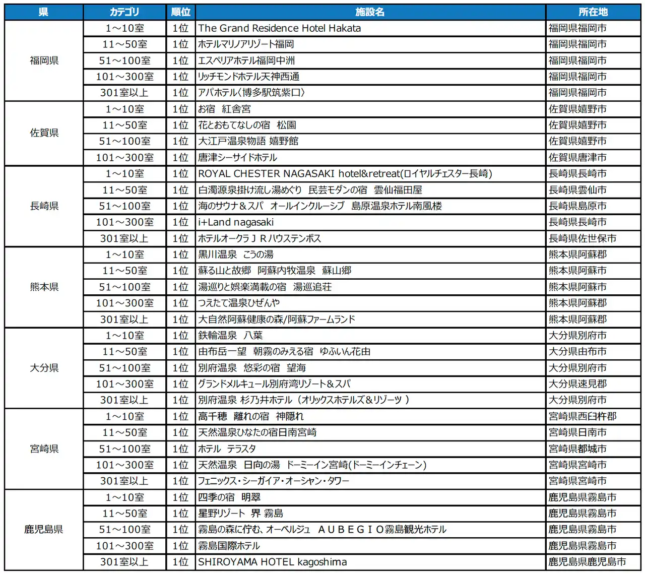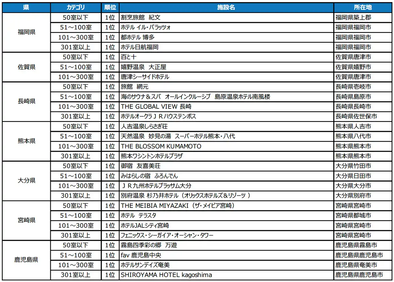 株式会社リクルート(本社:東京都千代田区 代表取締役社長:牛田 圭一)が運営する旅行情報サービス『じゃらんnet』、観光に関する調査・研究、地域振興機関「じゃらんリサーチセンター」は、2024年度(2024年4月~2025年3月)の1年間に顕著な実績を収められた九州ブロックの宿泊施設を表彰する「じゃらんアワード2024」(九州ブロック)を発表いたします。 |