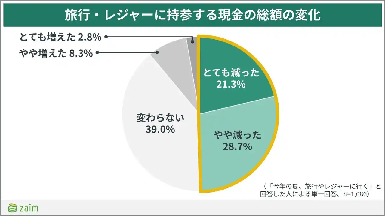 ・旅行に持参する現金は約半数が「減った」と回答 |