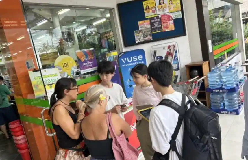 インドネシアバリ島を 修学旅行では 現地の企業への訪問を通して、企業の課題解決に携わる提案を修学旅行を通して考えました。提案を考える過程で生徒たちは、現地のスーパーマーケットでインタビュー調査を行なったり、最終日に実施した現地での商品販売会に向け、研修を通して、チラシの作成等の準備を進めていきました。最終回には、各グループが現地の人々に作成したチラシ等も用いて販売を実施し、また各企業の社長に英語プレゼンテーションを行いました。 |