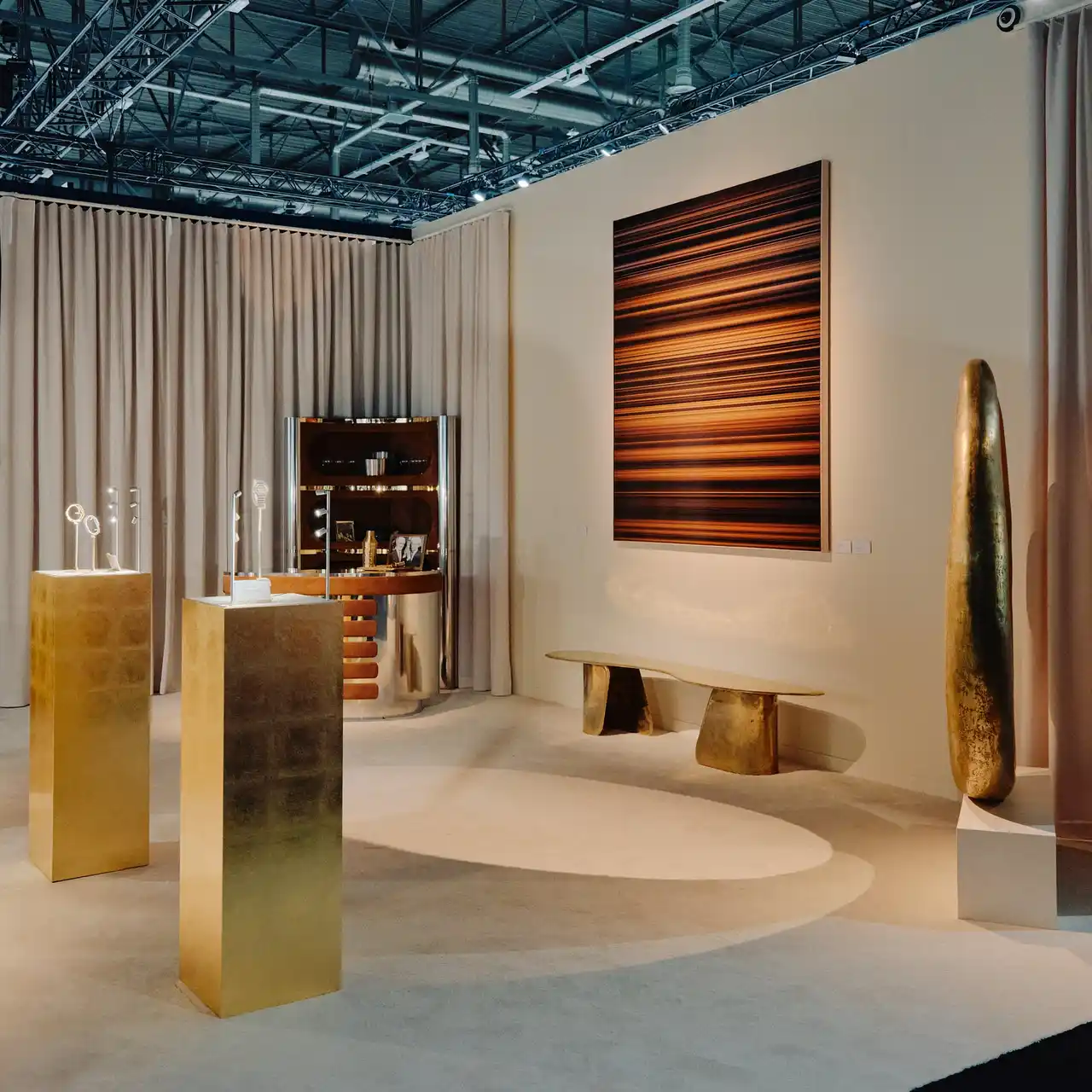 メゾンは特に、コンテンポラリー クリエイションとフランスのメティエ・ダールの卓越性を推進するScene Ouverteギャラリーと協力しました。同ギャラリーでは、Francisco Aniorteによるラッカー仕上げのスチールと手描きのセラミックタイルで作られたユニークな「Boira」テーブルが展示されました。メゾンはまた、ブラジルの古今のコレクティブルデザインを専門とするBrazil Modernistギャラリーとも提携しました。このギャラリーのブースには、Lucas Recchiaのブロンズ製ベンチ「Morfa #09」や、Carlo Haunerのアイコニックな対のアームチェア(1950年)が展示されました。 |
