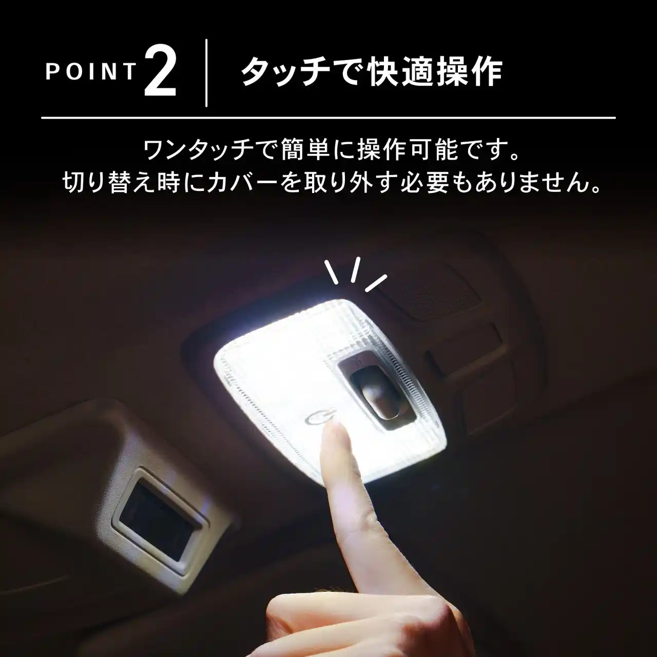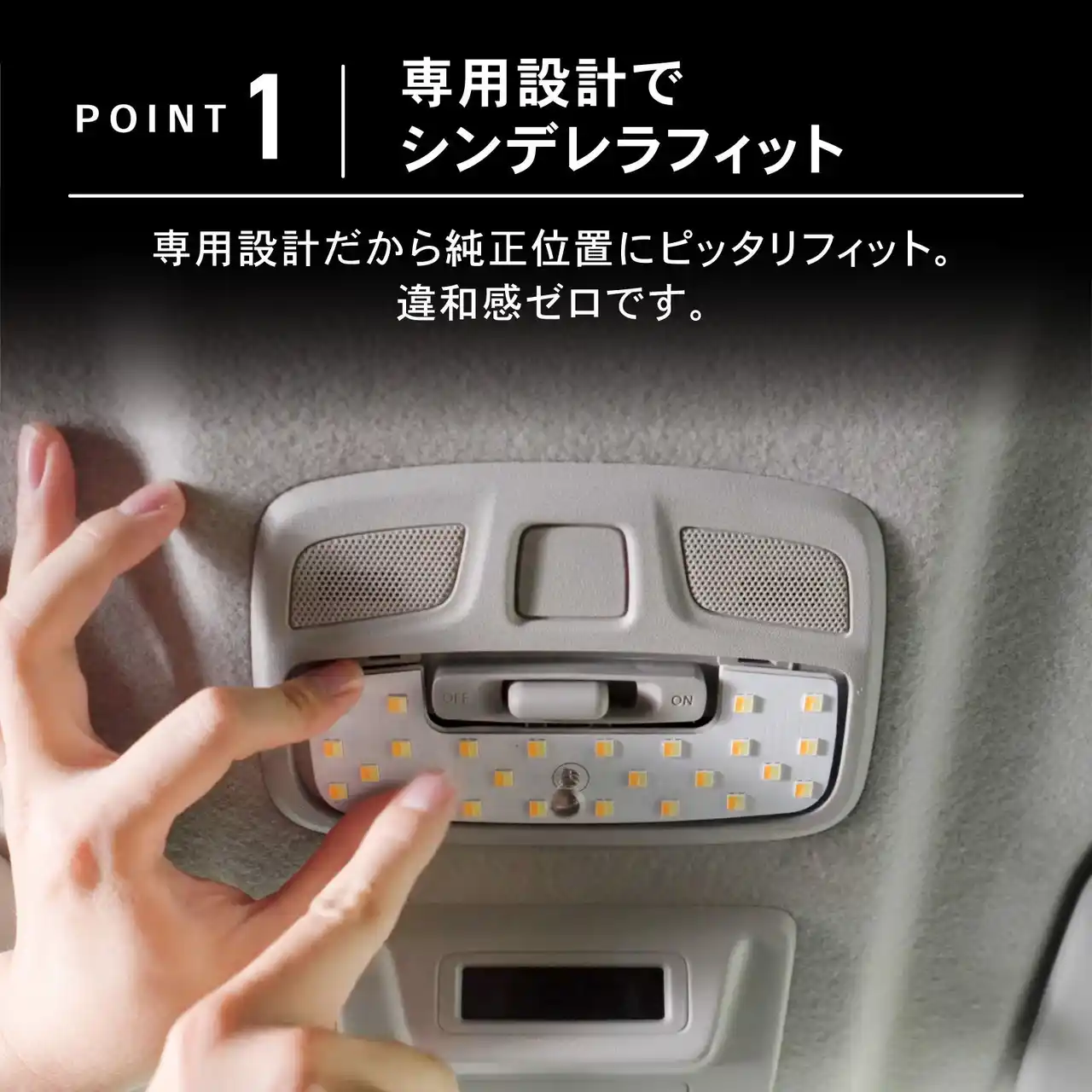 | 車種専用設計による自然なフィット感と、タッチ操作で直感的に使える操作性を両立。日常使いはもちろん、アウトドアや夜間の車内時間など、シーンや気分に合わせて車内空間を自在に演出できます。 |
