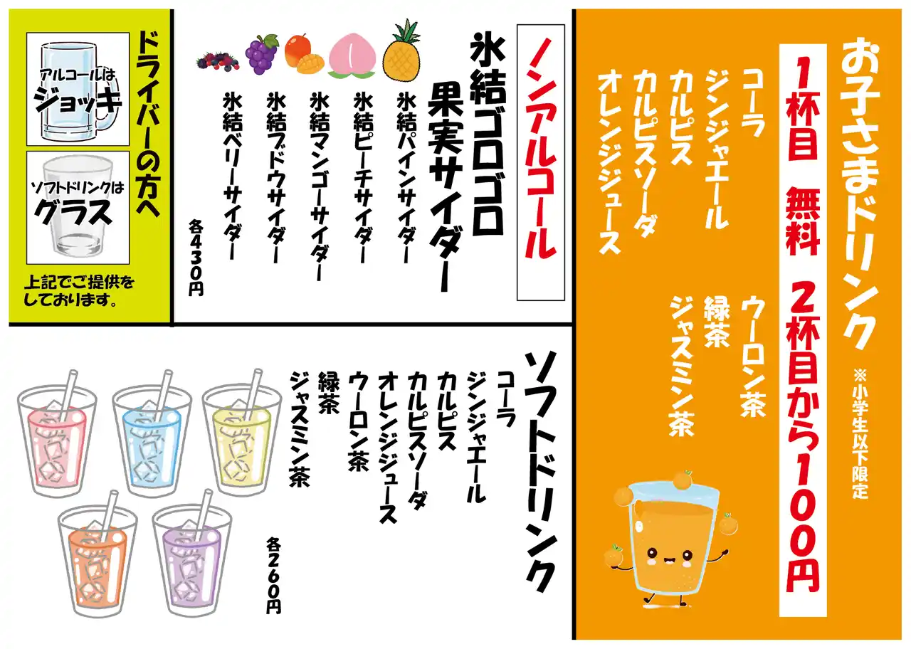 ■お子様も嬉しい、お子さまドリンク一杯目無料! |