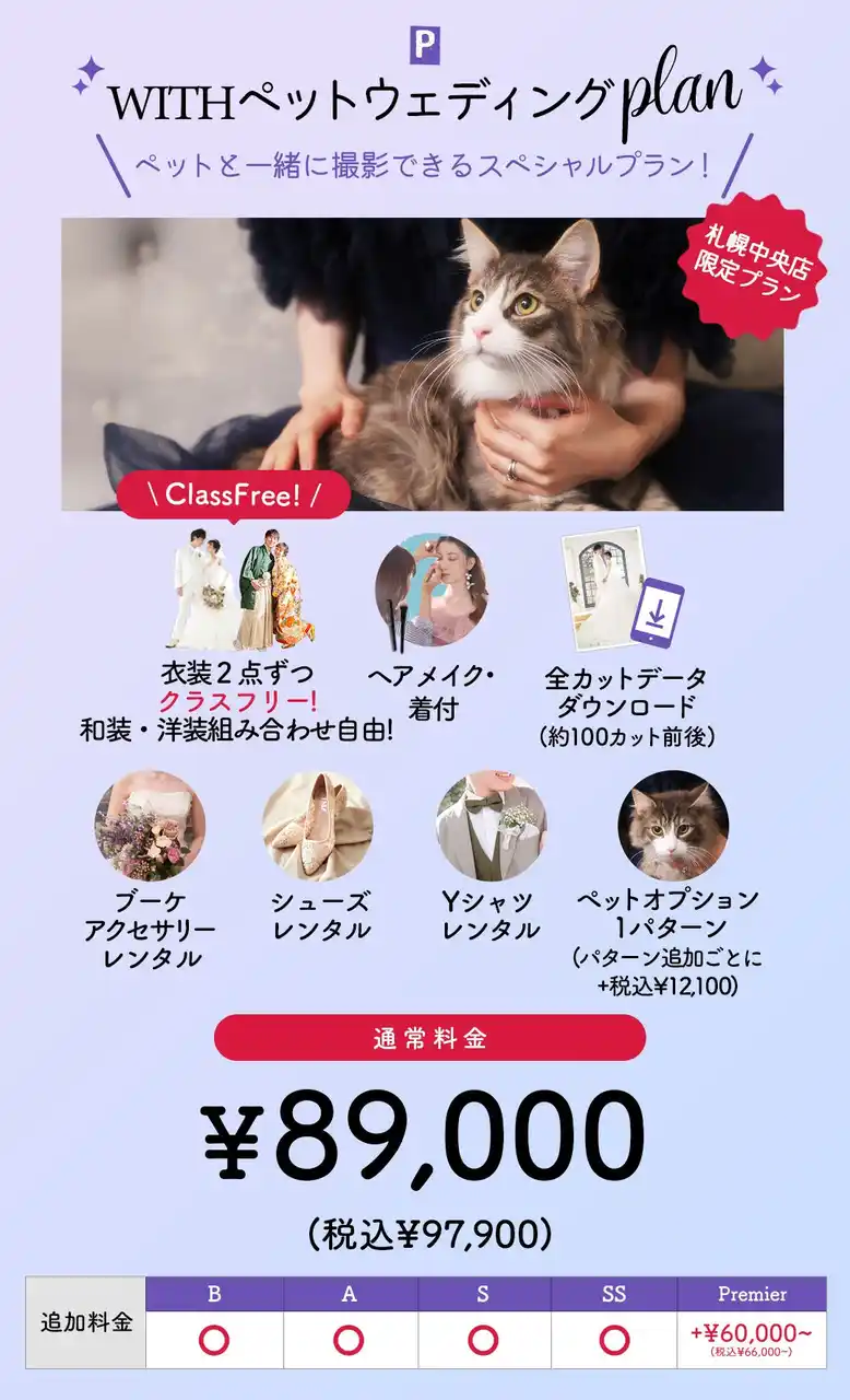 札幌中央店限定の、ペットと一緒に撮影ができる特別なプランです。 |