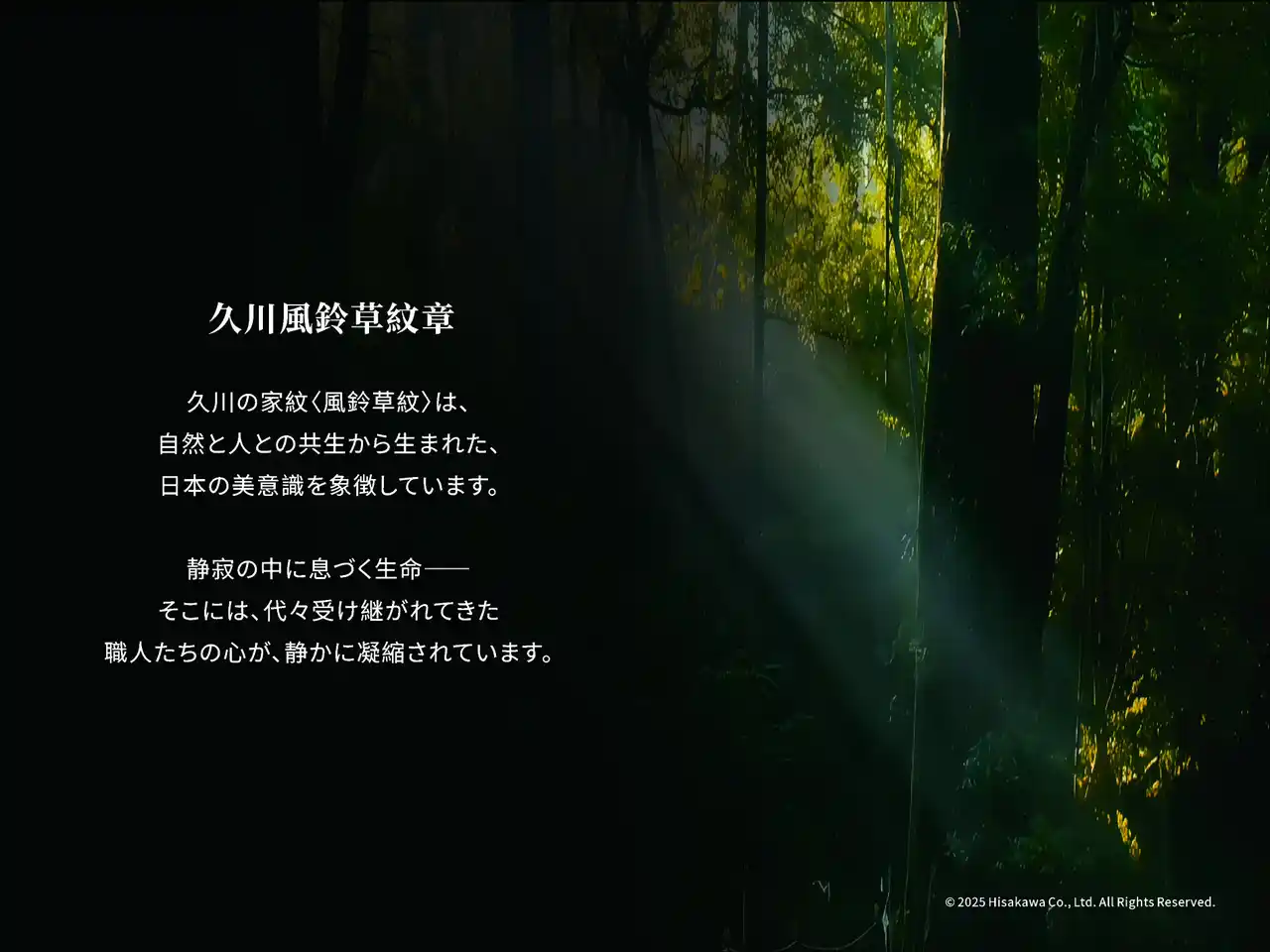 | 久川謹製は 自然と人の共生から生まれた日本古来からの美意識を表現し、 | |||