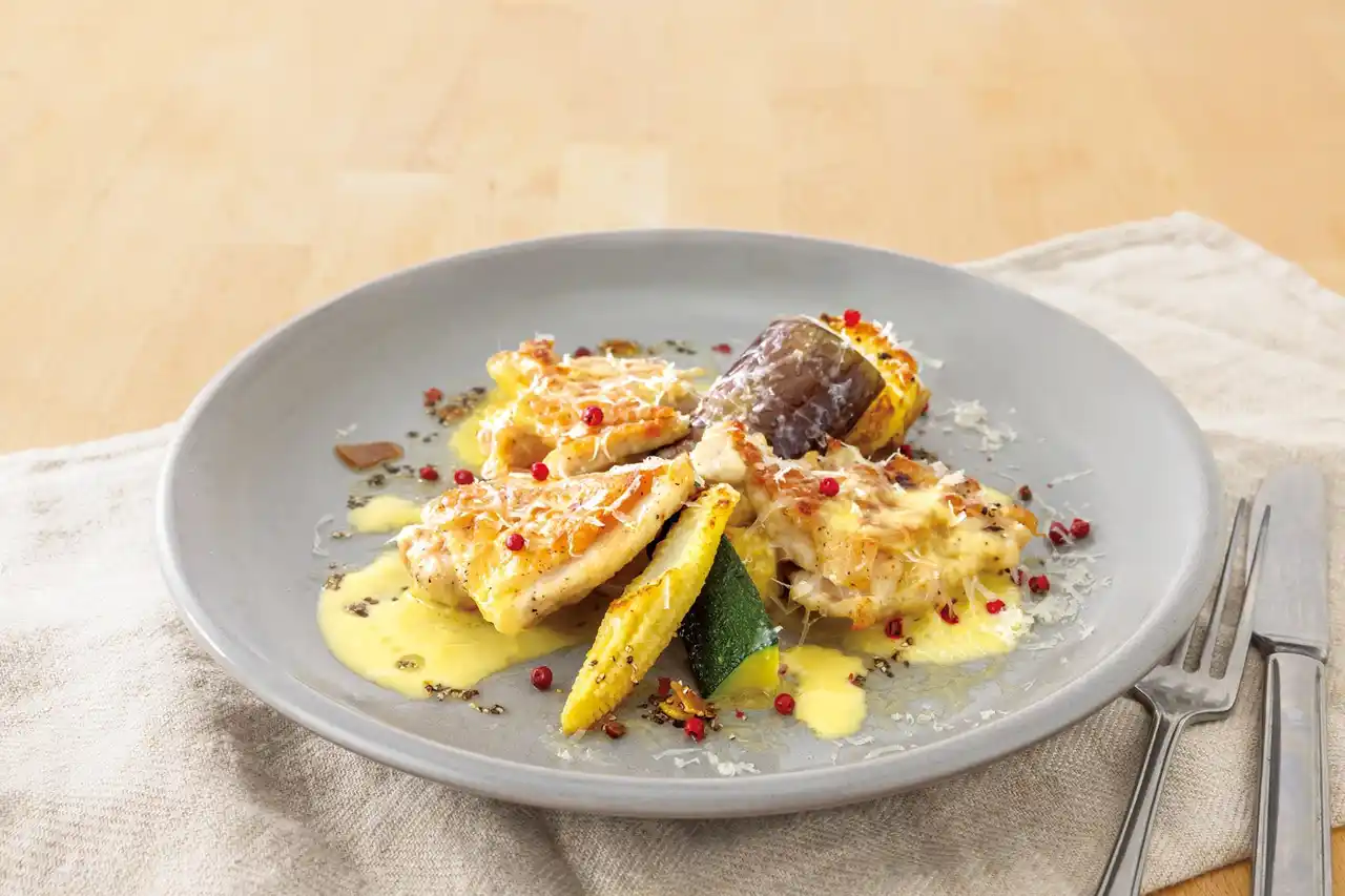 チキングリル カルボナーラソース仕立て(税込1,639円) ジューシーに焼き上げたチキンに、チーズのコクが際立つ濃厚なカルボナーラソースを合わせた一皿。 ピリッと香る胡椒オイルがアクセントとなり、食欲をそそる味わいに仕上げました。 |