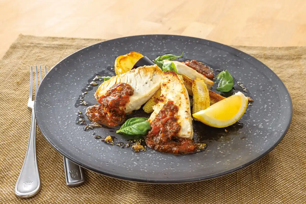 メカジキのグリル 香草香るトマトソース(税込1,859円) 香ばしく焼き上げたメカジキに、にんにくの風味を効かせたトマトソースをたっぷりと添えました。 香草とガーリック胡椒オイルが魚と野菜の旨味を引き立て、奥行きのある味わいをお楽しみいただけます。 |