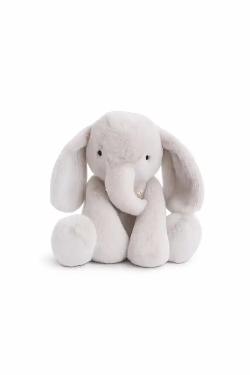 ころんとしたフォルムの「ぞうのオリーブ」のぬいぐるみ。 |