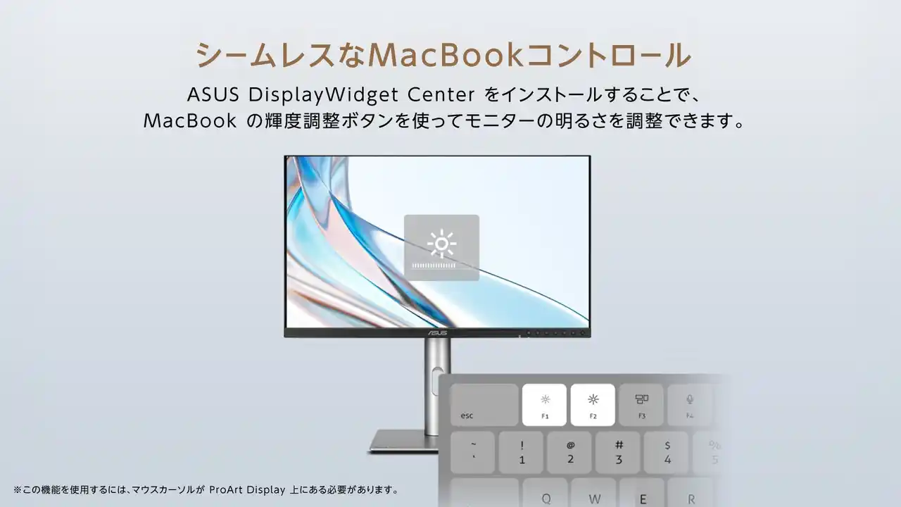 MacBookとのシームレスな連携:ソフトウェアをインストールすることで、MacBook本体のショートカットキーから外部モニターの明るさを直接コントロールできるようになります。 |