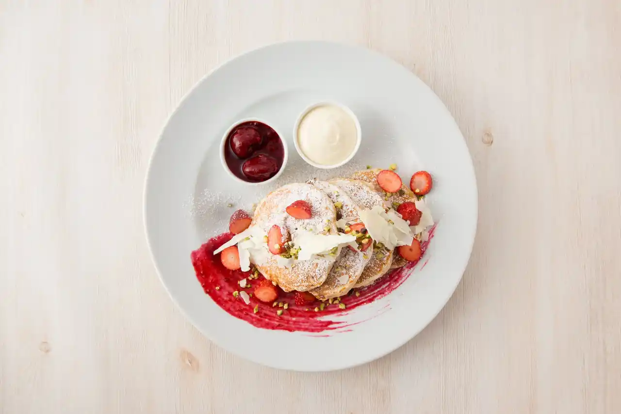 | 「ベリーホワイトチョコパンケーキ」 2,200円(税込) | |||||||||