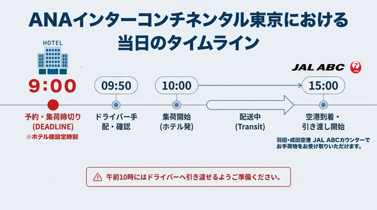 本導入により、同ホテルにご宿泊のお客様は、チェックアウト後に手荷物を空港へ当日配送することが可能となり、最終日も身軽に東京観光やビジネス活動をお楽しみいただけます。 |