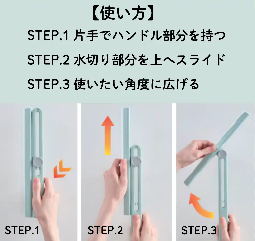 幅広の回転ヘッドで、広い面の水切りもラクラク! |