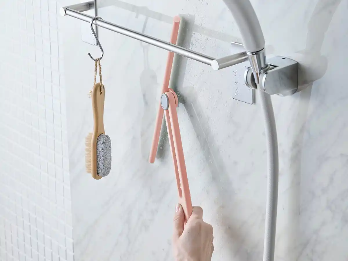 「Toffy マグネットスキージー 折りたたみ式」は、使用時はヘッド部分がパッと開いて、使用後は閉じてコンパクトに収納できる、折りたたみ式のスキージーです。28cmのワイド幅で、窓や浴室のような広い面も一気に水切りでき、掃除効率もアップ。また、ヘッド部分が回転することで、使いやすい角度に調節することができるため、無理のない姿勢で水気を取りのぞくことができます。ワイド幅ながら、折りたたむとコンパクトになり、浴室の壁にマグネットで貼り付けたり、S字フックに掛けたりと、場所をとらずに、いつでも手にとりやすく、すっきり保管できるのがポイントです。新生活を機に掃除習慣を見直したい方や、はじめて揃える方にも取り入れやすいアイテムです。 |