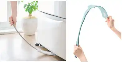 ヘッドにフロアワイパーシートを装着し、冷蔵庫や洗濯機の横など、ほうきや掃除機が届かないすき間にもすっと入り込む、厚み約1cmの超スリムなすき間ワイパー。やわらかいポリプロピレン素材を採用しており、本体をしならせながら使えるため、無理のない姿勢で奥までしっかり掃除ができます。約20×30cmのフロアワイパーシート(別売)が取り付け可能で、ウェット・ドライ両タイプに対応しています。 |