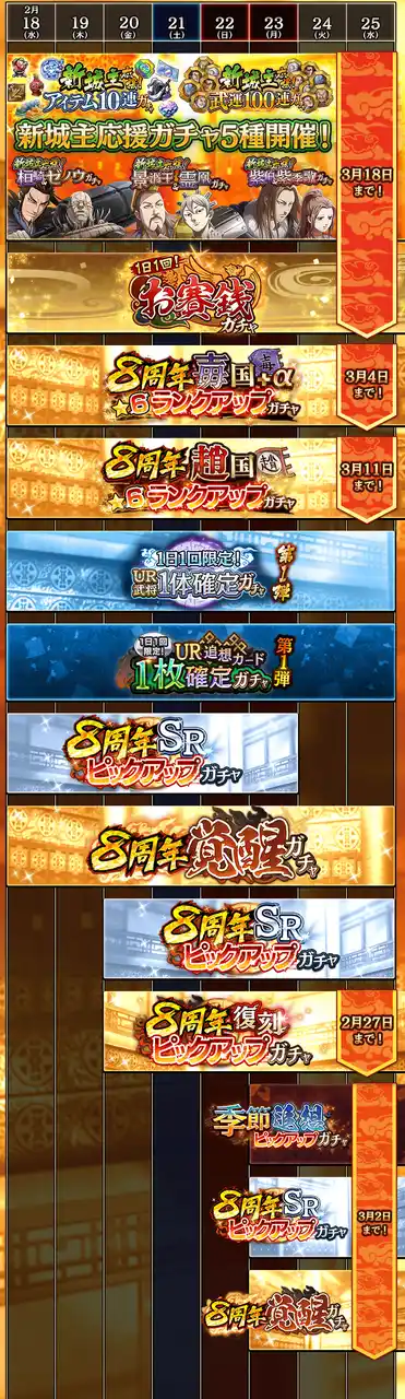 項翼・白麗・傅抵・燕呈:2月18日(水) メンテナンス後 ~ 2月25日(水) 14:00 |