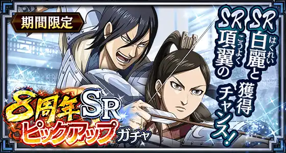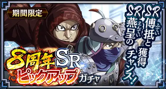 『キングダム 乱 -天下統一への道-』は、たくさんのお客様に遊んでいただいているおかげで、2月22日に8周年を迎えます。 |