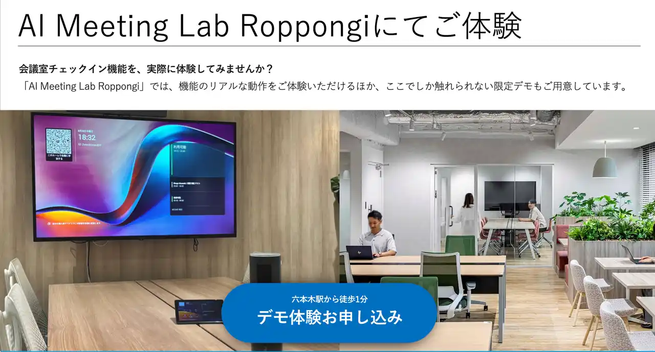 | Acall が大切にしているのは、機能や仕組みとして理解することではなく、「会議の現場で何がどう変わるのか」を体感していただくことです。Acall 六本木オフィスでは、実際の会議室チェックインの流れや、来訪者・従業員の動線、会議デバイスや各種プロダクト連携を、実際のオフィス環境の中で体験いただけるデモ・見学を実施しています。 | |||