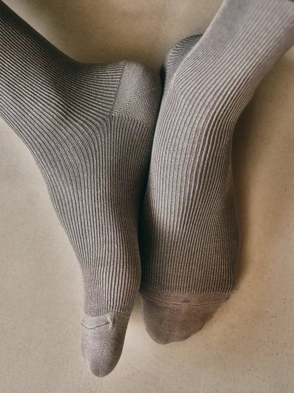 シルクを採用し触れた瞬間、しっとりと肌に溶け込むようなシルクのとろみを感じる靴下。吸湿性と放湿性が高く、汗を素早く吸収・蒸散するため蒸れにくく、快適な足元を持続します。上質さと快適さを備えた最高峰の1足です。 |