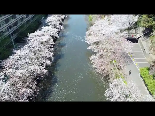 【咲き始め~満開】 日に日に桜の花が空を覆っていく姿を楽しむことができます。 【満開後】 花びらが水面に落ちていく桜吹雪と、絨毯のように広がる「花筏(はないかだ)」で水面がピンク色に染まります。そのころには、ホテル雅叙園東京前のシダレサクラが満開になります。ソメイヨシノが開花してから約10日後には、大崎・五反田エリアの八重桜の開花を楽しむことができます。 |