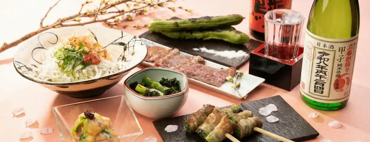 | うまやが厳選した九州の新酒と、菜の花豚バラ巻き串や鮪とうるいのぬたなど、日本酒にぴったりなメニューをご用意いたします。今しか飲めない限定のお酒と旬の食材で、一足早く春を感じてみませんか? 皆さまのお越しをお待ちしております。 | ||||||||||||