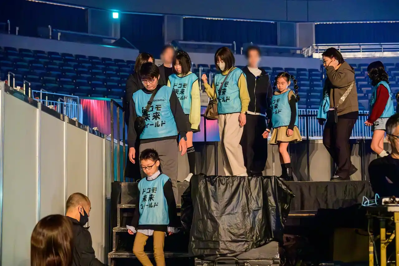 翌日は「TGC in あいち・なごや 2026」の本番ステージを観覧。昨日のガランとした会場から一変、多くの観客で埋め尽くされた客席と、ファッションショーならではの煌びやかな雰囲気に、思わずテンションが上がります。1日目に受けたスタッフのお仕事説明やリハーサルの見学によって、これまでとは違った視点でもショーを楽しんだ子どもたち。プロモデルの華麗なランウェイやアーティストによるライブパフォーマンス、IOWNを活用し時間と空間を超えた演出が新しい観覧体験となったドコモステージと、最後まで興奮しっぱなしのステージは忘れられない思い出となりました。 |