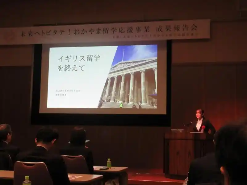 | 国立大学法人岡山大学(本部:岡山市北区、学長:那須保友)の学生ら4人が2026年2月16日、岡山国際交流センターで開催された「令和7年度 未来へトビタテ!おかやま留学応援事業」成果報告会に参加しました。 | ||||