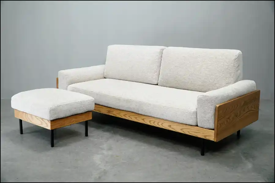 unicoの定番人気。木フレームが主役の北欧テイストで、細身の木脚+フレームの見えるデザインが特徴です。中古市場では需要が強く、状態が良いと安定して問い合わせが入ります。査定では、座面のヘタりやカバーの毛羽立ち・色褪せに加えて、フレームの打痕(角の欠け)が見られやすいです。クッションの状態が良く、カバーの手入れがされている個体は評価が上がりやすい傾向があります。 |