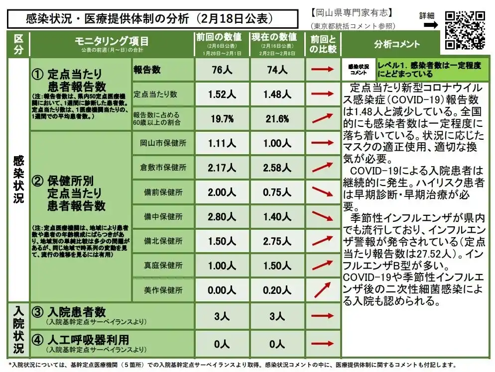 【岡山大学】岡山県内の感染状況・医療提供体制の分析について(2026年2月18日現在)